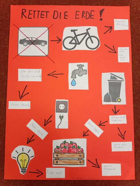 Kinder des 4. Jahrgangs zeigen anhand selbst erstellter Plakate anschaulich, was jede(r) von uns täglich für mehr Umweltschutz tun kann!