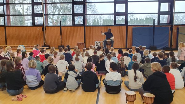 Unsere Projektwoche "Tambo Tambo" startete am Montag, 10.02.24 und endet mit einem Abschluss-Konzert für Familien und Freunde am 14.02.24, um 14.00 Uhr in der Turnhalle der Schule.