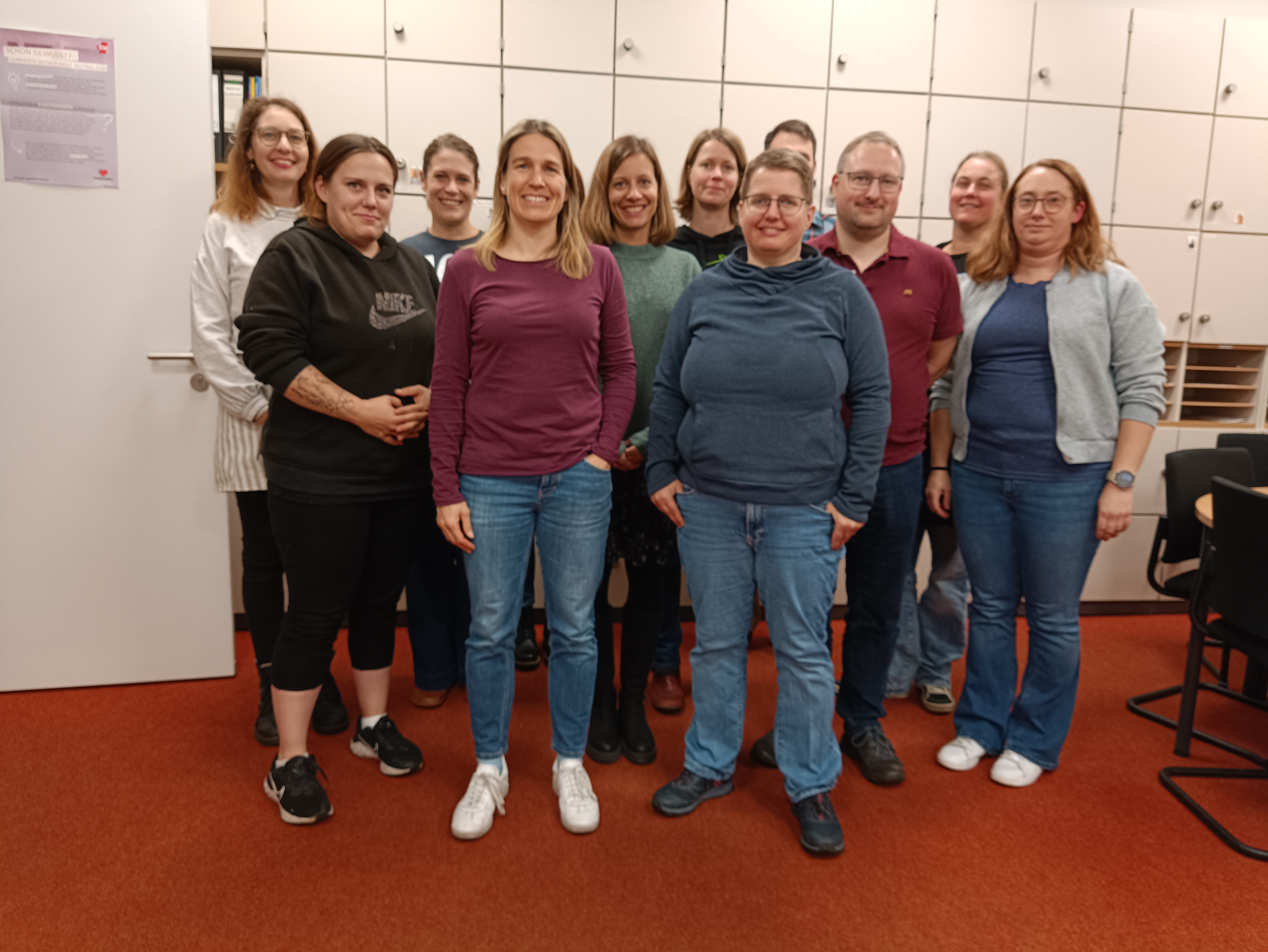Die Mitglieder von links nach rechts: Frau Bath (4c), Frau Engler (1a), Frau Fuchs (3c), Frau Krüger (4b), Frau Siemer (1c, leider verdeckt), Frau Humpich-Schulz (4c), Frau Helle (4b), Frau Kießwetter (1b), Herr Overbeck (2c, leider verdeckt), Herr Börst (1b), Frau Poeschel (2b, 4a), Frau Büßel (4a)